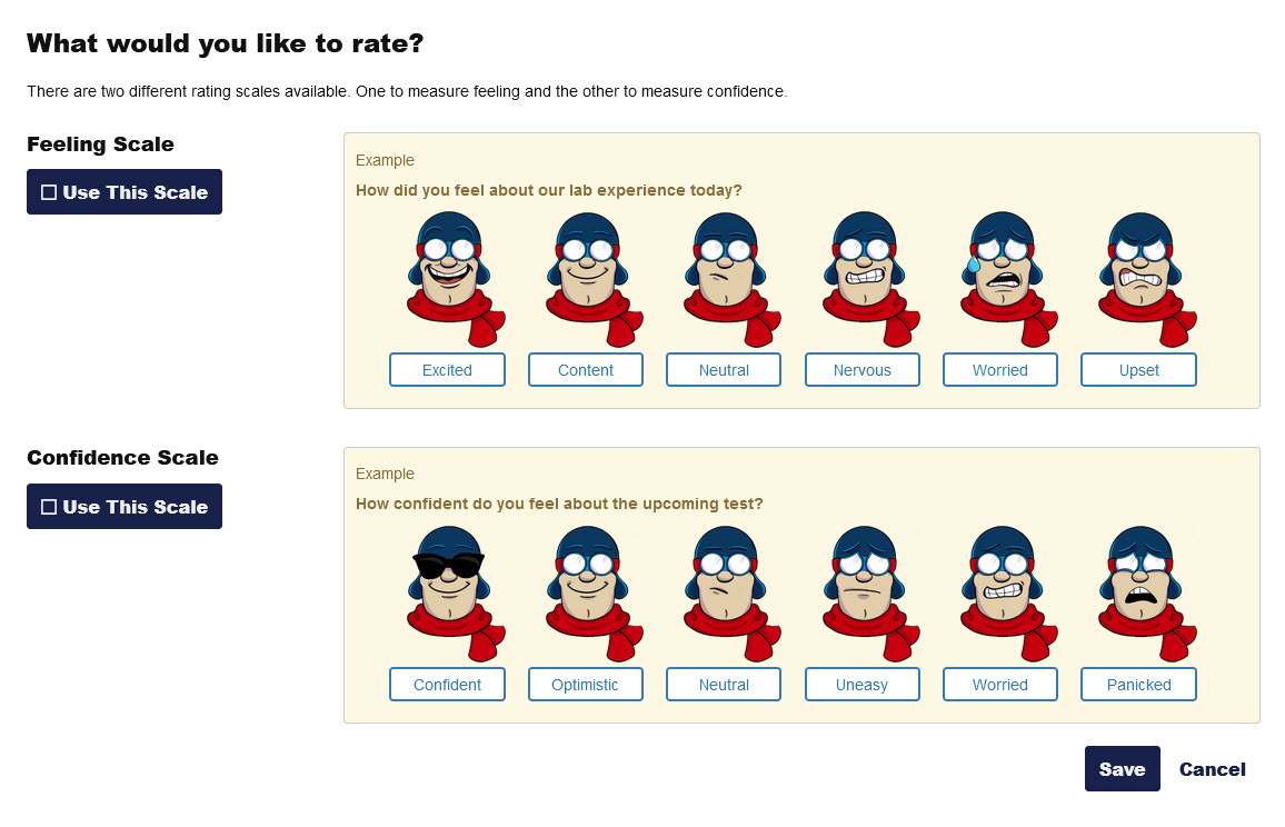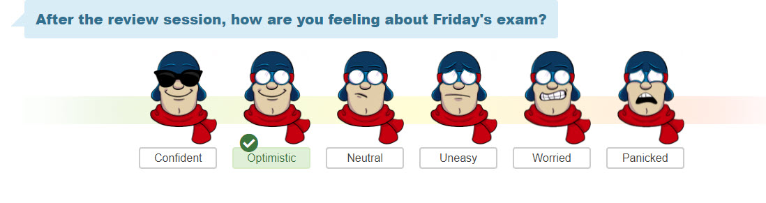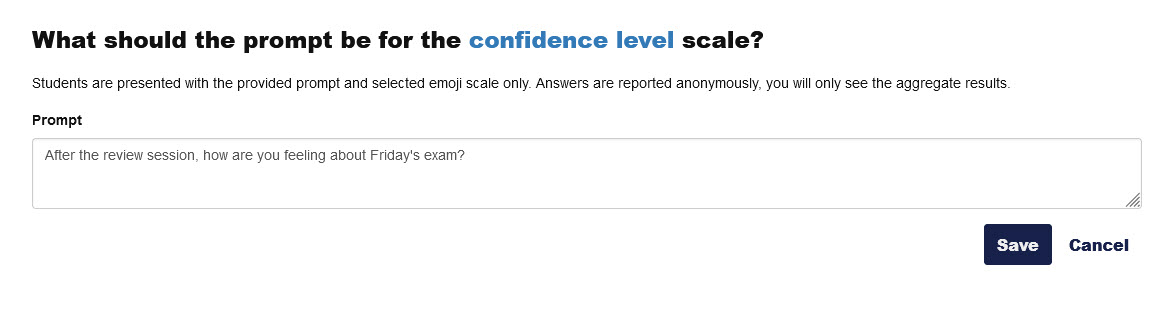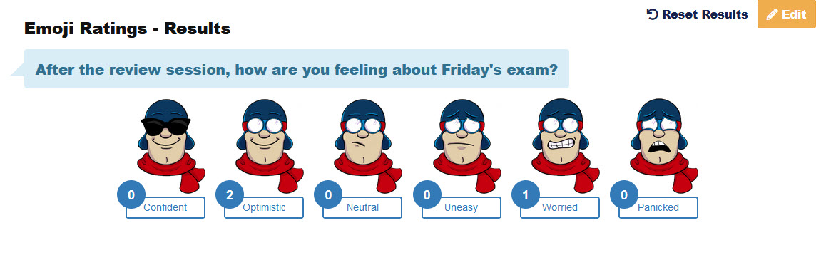 Collect feedback from students based on either a feeling scale or a confidence scale with ratings represented by emojis.