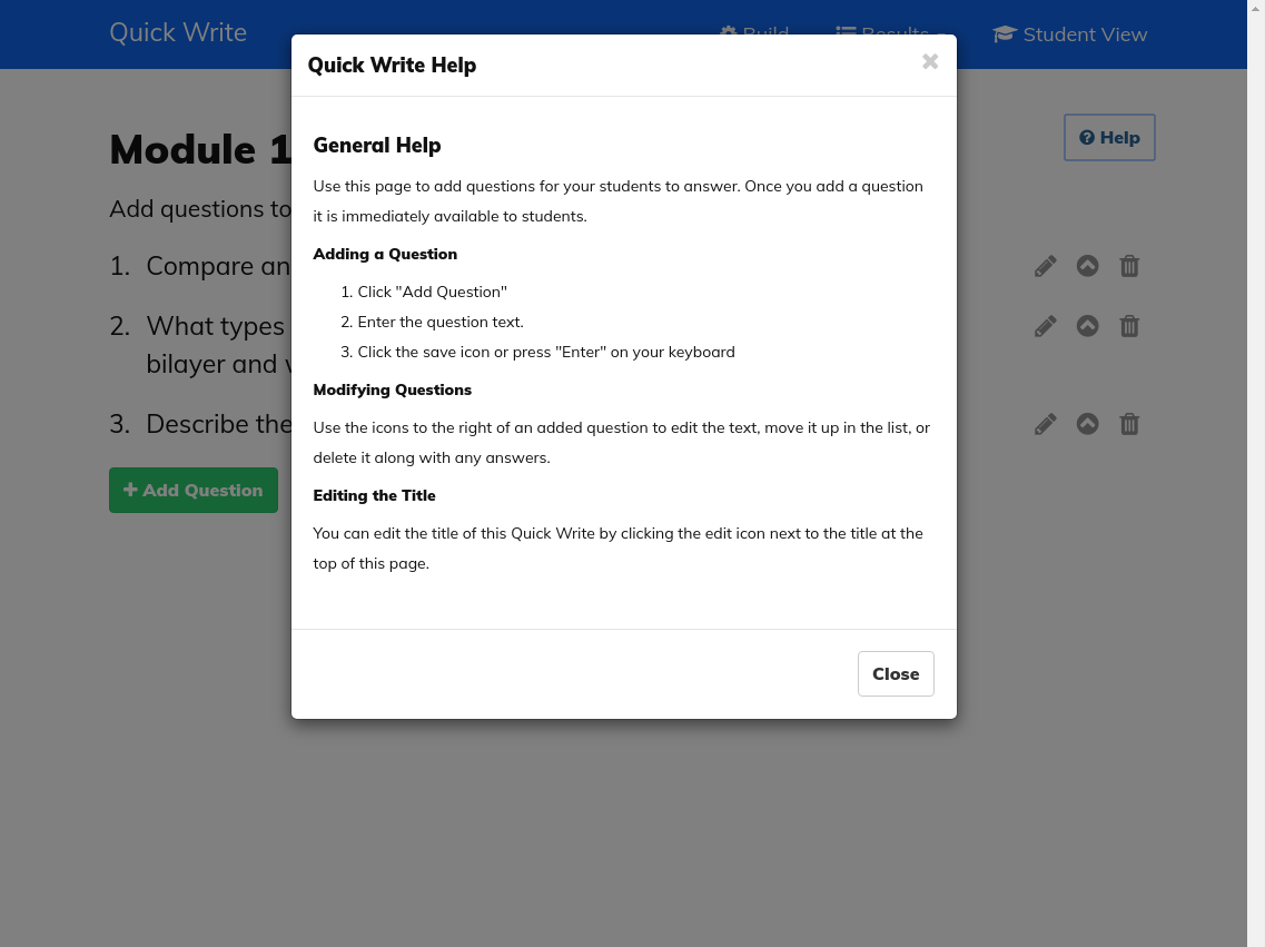 Add one or more short answer questions for students to respond to.